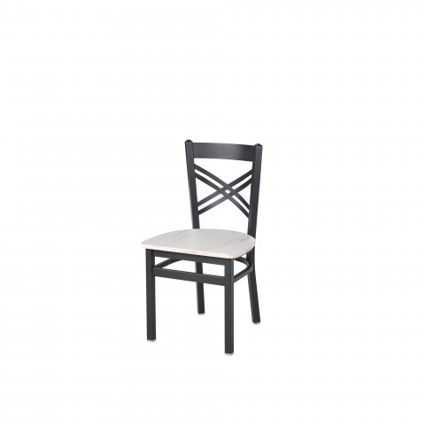 Akrin Chair, cross back, antique wash relic seat, steel frame with sand black finish