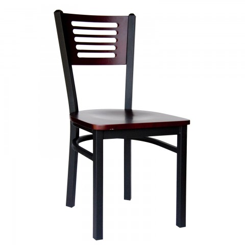 Espy Side Chair, slotted wood back, wood seat, metal frame with sand black finish