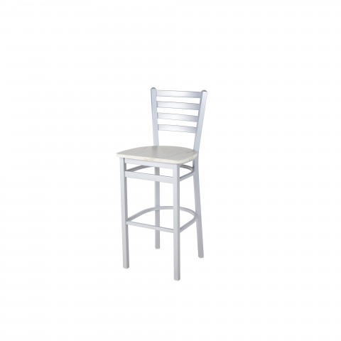 Lima Barstool, ladder back, antique wash relic seat, footrest, steel frame with silver mist finish