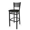 Polk Barstool, perforated back, upholstered padded seat, footrest, metal frame with sand black finish, grade 1 uph.