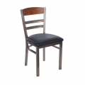 Barrick Chair, autumn ash wood back, upholstered seat, steel frame with clear coat finish, grade 2 uph.