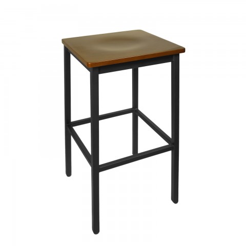 Trent Bistro Barstool, backless, autumn ash wood seat, square metal frame with sand black finish