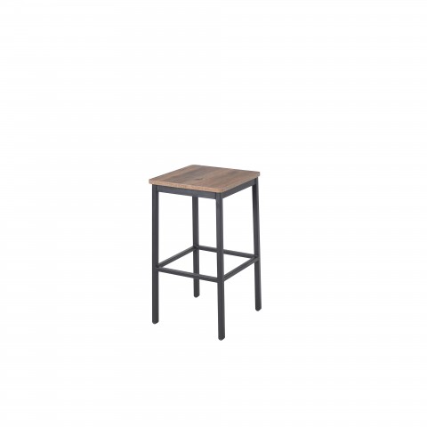 Trent Barstool, backless, knotty pine relic seat, footrest, square steel frame with sand black finish