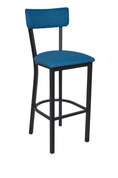 Bristol Barstool, armless, upholstered box seat, footrest, steel frame with sand black finish, COM uph