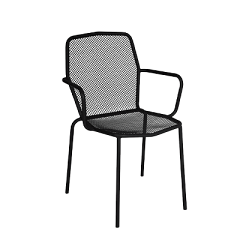 Avalon Stacking Arm Chair, micro mesh back & seat, outdoor/indoor, powder coated, aluminum frame with black finish