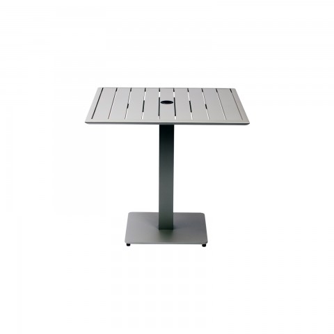 South Beach Table, square, 32" x 32", dining height, outdoor/indoor, with umbrella hole in column, powder coated aluminum, titanium silver finish