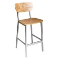 Hamilton Barstool, natural ash veneer back, upholstered seat, footrest, powder coated welded steel frame with platinum finish, grade 3 uph.