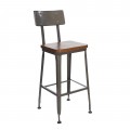 Lincoln Barstool, clear coat metal back, autumn ash wood seat, footrest, welded steel frame with clear coat finish