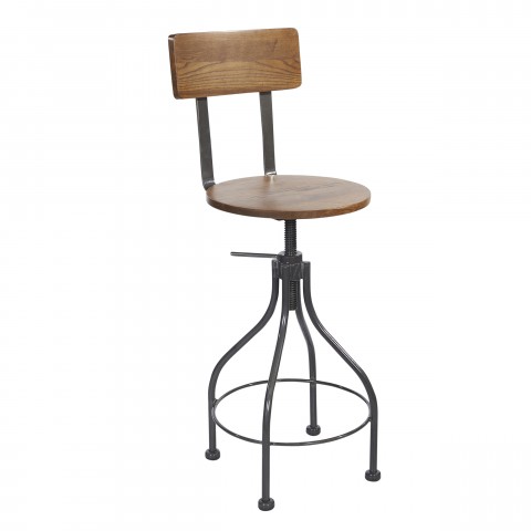 Screw Barstool, adjustable to counter height/bar height with lock pin, autumn ash wood back and seat, steel frame with clear coat finish