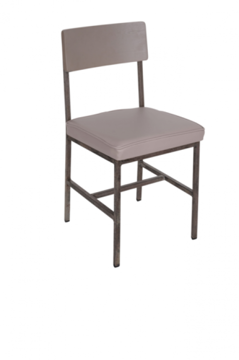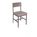 Memphis Barstool, counter height, gray ash wood back, upholstered box seat, footrest, steel frame with distressed finish, Grade 4 uph.