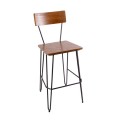 NV Barstool, plain autumn ash wood back, upholstered padded seat, footrest, metal frame with sand black finish, grade 2 uph.