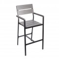Seaside Barstool, wide, synthetic teak back, arms & seat ,outdoor/indoor, powder coated aluminum frame, black finish