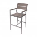 Seaside Barstool, wide, synthetic teak back, arms & seat ,outdoor/indoor, powder coated aluminum frame, soft gray finish