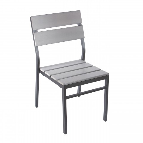 Seaside Stacking Side Chair, wide, synthetic teak back & seat ,outdoor/indoor, powder coated aluminum frame, black finish