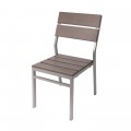 Seaside Stacking Side Chair, wide, synthetic teak back & seat ,outdoor/indoor, powder coated aluminum frame, soft gray finish