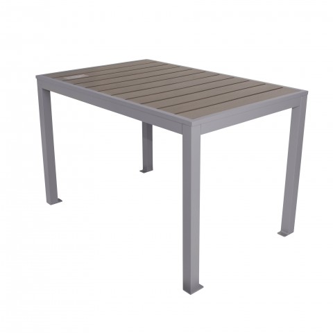 Seaside Table, 31" x 48", rectangle, dining height, (4) leg bolt down base, synthetic gray teak top, outdoor/indoor, powder coated aluminum frame with soft gray finish