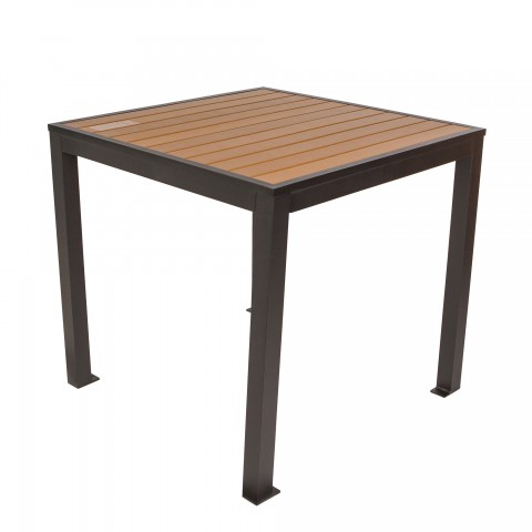 Longport Table, 32" x 32", square, dining height, (4) leg bolt down base, synthetic teak top, outdoor/indoor, powder coated aluminum frame with black finish