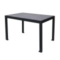 Surf Inlay Table, 36” x 72”, dining height, rectangular, (4) leg, bolt down, HPL coating, Pietro black marble top, black frame (umbrella hole optional)