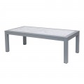 Belmar Inlay Coffee Table, 47"W x 23-1/2"D, Carrara white marble Top, powder coated aluminum frame with soft gray finish