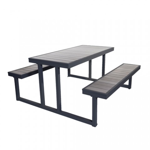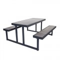 Seaside Picnic Table, 27-1/2" x 72" x 29-1/2"H top, rectangular, synthetic gray teak slat top, outdoor/indoor, powder coated aluminum with black finish