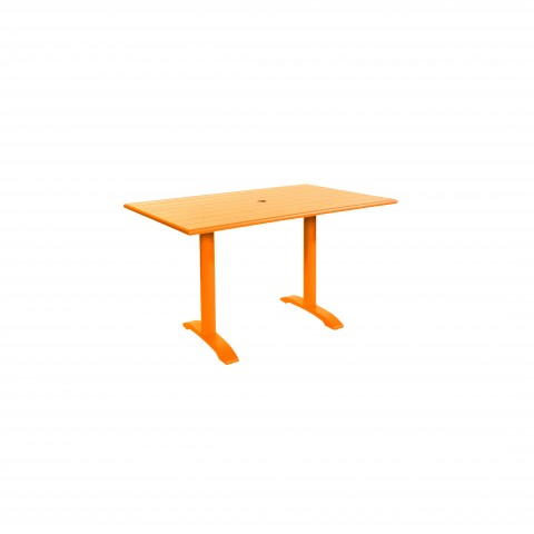 Beachcomber-Bali Table, 32" x 48", rectangular, dining height, aluminum top, 22" aluminum end bases, umbrella compatible, powder coated finish, citrus