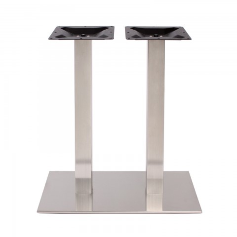 Elite Table Base, bar height, 16" x 30" base, 3" square double column, outdoor/indoor, 304 brushed stainless steel