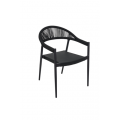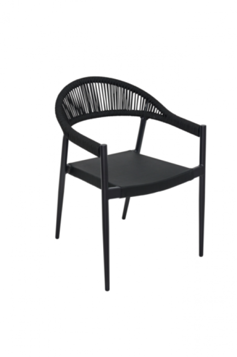 Tahiti Stacking Arm Chair, black rope back, black sling seat, black powder coat aluminum