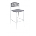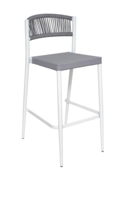 Tahiti Stacking Barstool, medium gray rope back, medium gray sling seat, white powder coat aluminum
