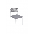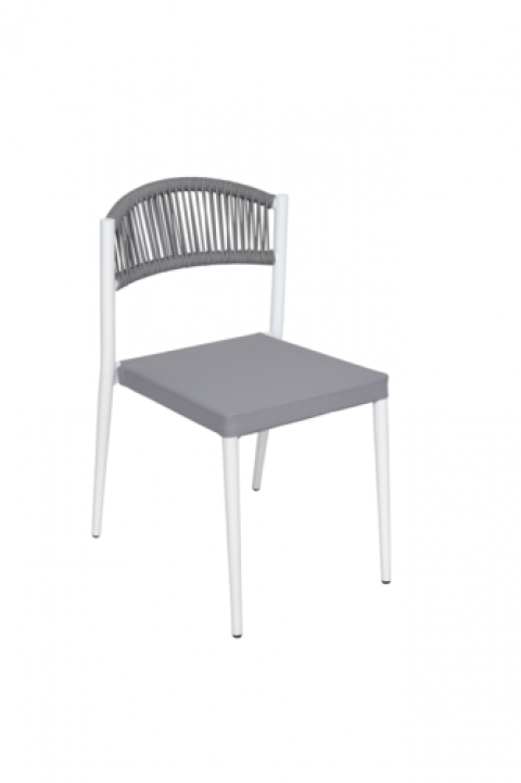 Tahiti Stacking Side Chair, medium gray rope back, medium gray sling seat, white powder coat aluminum