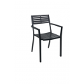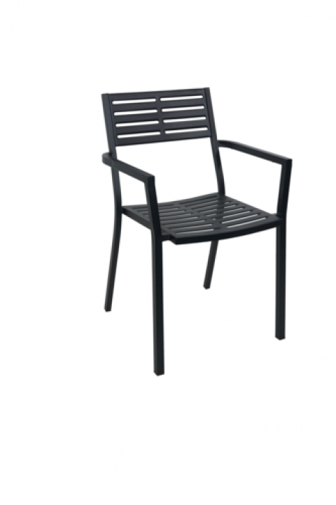 Daytona Stacking Armchair, stamped steel slotted back and seat, outdoor/indoor, steel frame, e-coated, powder coated, black finish