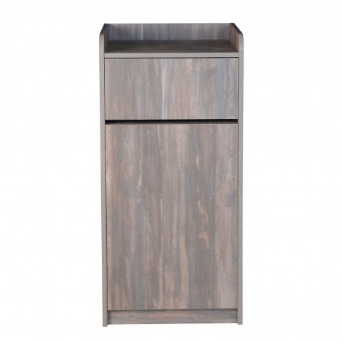 Trash Enclosure, 20-1/2" W x 22" D x 46" H overall, with tray shelf, (1) swing door, (1) hinged access door, MDF core, melamine surface with PVC self-edge, uses standard 35 gal trash can (19" x 19" x 27"), ships KD, chestnut