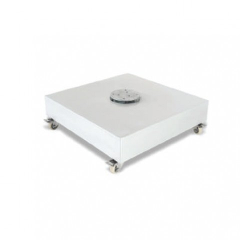 Umbrella Base, 33" base plate, square, 480 lbs., for 2" dia. umbrella poles, with wheels, silver mist