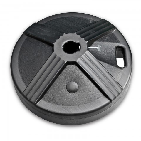 Umbrella Base, 16" dia. base plate, 50 lbs., for use with tables, fits 1-1/2" dia. umbrella poles, concrete filled
