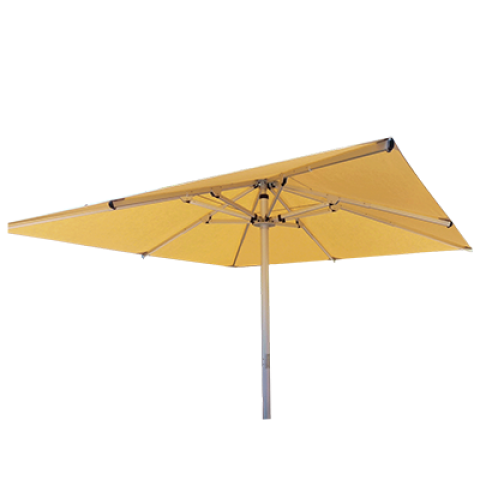 Market Umbrella, 13 ft, square top, 4 panels, bolt-down, telescoping 4" center post, crank lift, anodized aluminum, 9 ounce marine grade acrylic fabric