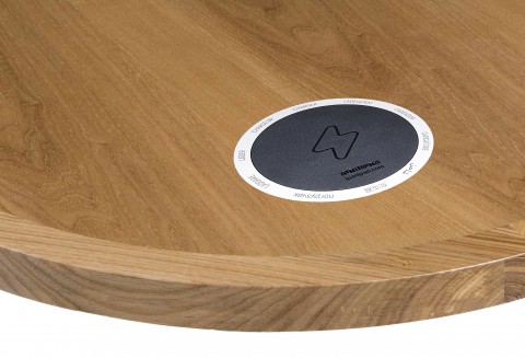 Table Top, 48" dia., round, with (3) flat pack wireless chargers installed, with (3) flat pack wireless chargers installed, 1-1/4" thick, natural ash wood edge with veneer inlay (not included with table and antenna: (Key NP-KEY) the (battery charger NP-CHARGE))