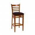 Berkeley Barstool, ladder back, upholstered padded seat, footrest, wood frame with black finish, grade 4 uph.