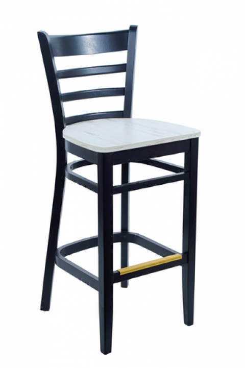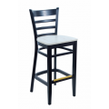 Berkeley Barstool, ladder back, relic seat, footrest, wood frame with black finish