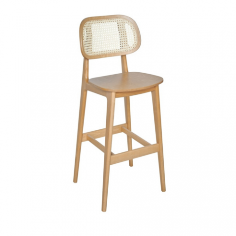 Emma Barstool, armless, cane back, footrest, dark walnut, COM