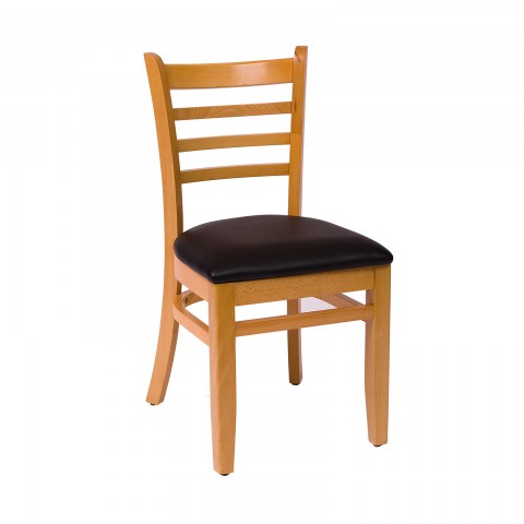 Berkeley Side Chair, ladder back, upholstered padded seat, wood frame with natural finish, grade 4 uph.