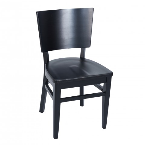 Aston Side Chair, solid back design, European Beechwood construction, wood veneer back, upholstered seat, black stain finish, COM