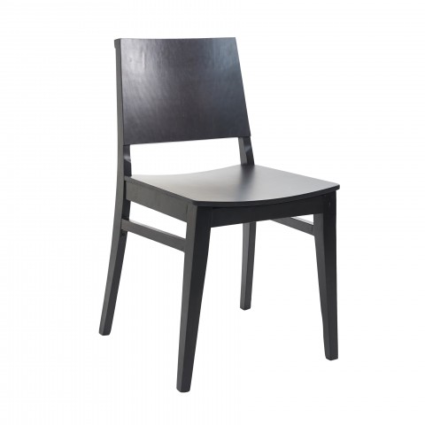 Dover Side Chair, solid back design, European Beechwood construction, wood veneer back, upholstered seat, black stain finish, grade 2 uph.