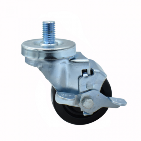 Polyolefin Wheel, 3" diameter, 5/8"-13 x 1" threaded stem, with top lock brake, 300 lb. weight capacity, operational temp range -45° to 180°F, double ball bearing, zinc plated, , NSF