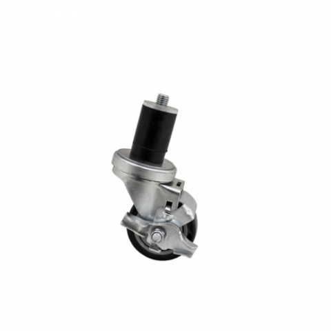 Swivel Caster, 3" diameter expanding stem, fits 1-5/8" OD tubing, top lock brake, non-marking polyurethane tread, 300 lb. capacity, resistant to acids and caustics, double ball bearing, operational temperature range -45° to 180°F, zinc plated