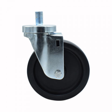 Polyolefin Wheel, 5" diameter, 5/8"-13 x 1" threaded stem, without brake, 300 lb. weight capacity, operational temp range -45° to 180°F, double ball bearing, zinc plated, , NSF