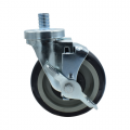 Polyurethane Wheel, 5" diameter, 3/4"-10 x 1" threaded stem, with top lock brake, 300 lb. weight capacity, operational temp range -45° to 180°F, resistant to acids & caustics, double ball bearing, zinc plated, , NSF