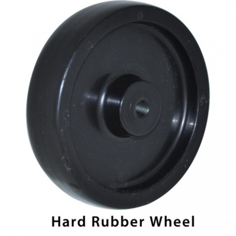 Caster, 5" diameter expanding stem, fits 1-5/8" OD tubing, without brake, high impact hard rubber tread, nylon bearing sleeve, 300 lb. capacity, double ball bearing, operational temp range -40º to 160º F, zinc plated