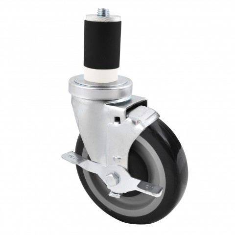 Caster Kit, work table 5" diameter expanding stem, fits 1-5/8" OD tubing, non-marking polyurethane tread, top lock brake, 300 lb. capacity, resistant to acids & caustics, double ball bearing, operational temp range -45° to 180° F, zinc plated, POP box, NSF (4 per kit)