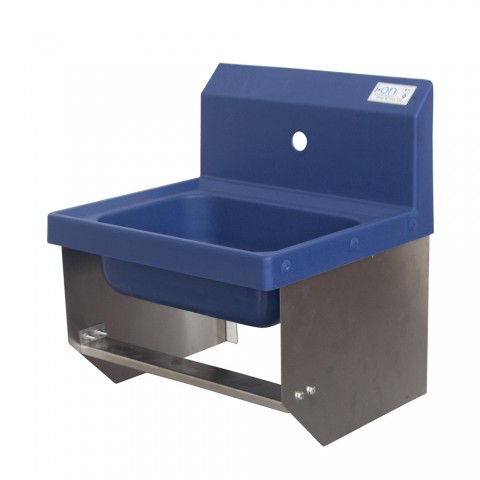 Antimicrobial Hand Sink with Knee Valve Brackets, 14" wide x 10" front-to-back x 5" deep bowl, 1 faucet hole, NSF, cCSAus