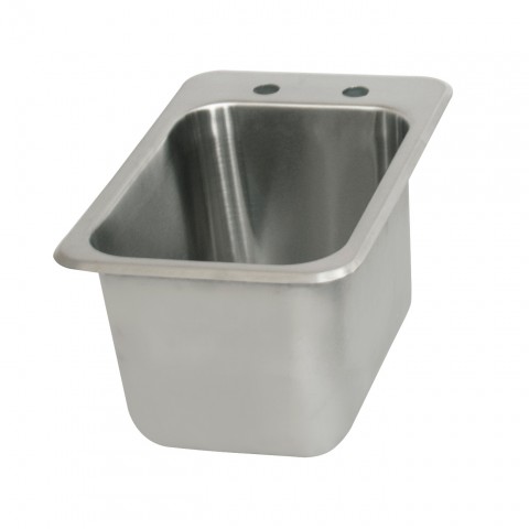 Drop-In Sink, one compartment, 12-1/8"W x 18-1/2"D x 9-3/8""H overall size, (1) 10" wide x 14" front-to-back x 9" deep compartment, 4" OC deck mount faucet holes, includes basket drain (BKDR-4), 18/304 stainless steel construction, 11-1/2" x 17-7/8" cutout required