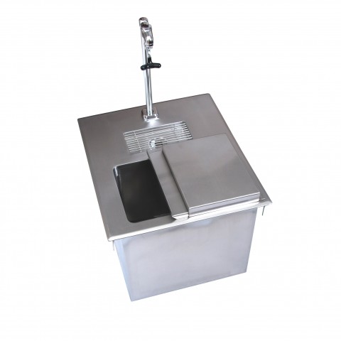 Ice & Water Unit, drop-in, 18"W x 21"D O.A., ice bin with 11" deep liner & removable sliding cover, water filler station with BKF-SGF-G faucet & perforated insert, includes BKDR-325CP & BKDR-15CP drains, 304 stainless steel construction, 17-1/8" x 20" cutout recommended, lead free, NSF